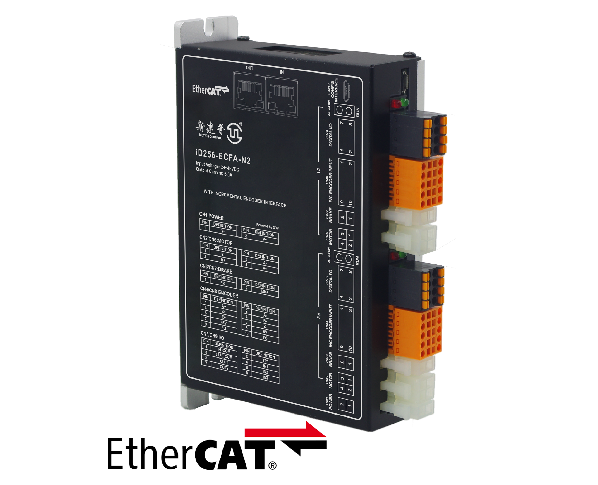 EtherCAT 通讯控制,支持控制模式 PP、PV、HM、CSP、CSV